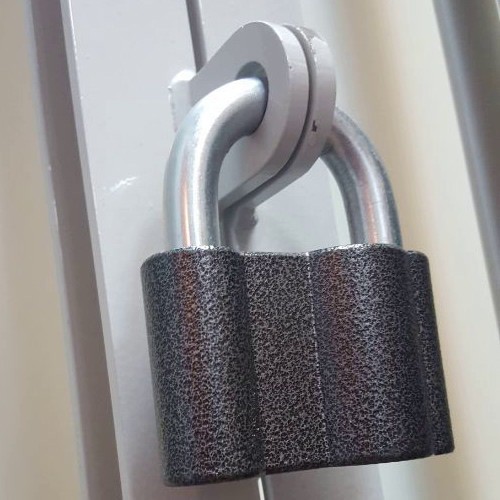 Наиболее простой запор на раздвижную решетку - "ушки" для замка. Подходят для всех типов решеток. При изготовлении решеток с большой высотой рекомендуется устанавливать две или три пары ушек для повышения взломостойкости конструкции. В зависимости от количества "ушек" различают два типа закрывания: "Одинарное ушко" и "Пара ушек" для навесного замка.