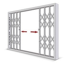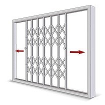 Решета раздвигается от центра к бокам. Рекомендуется использовать при больших габаритных размерах решёток. Такие раздвижные решетки устанавливаются на окна, двери, входные группы