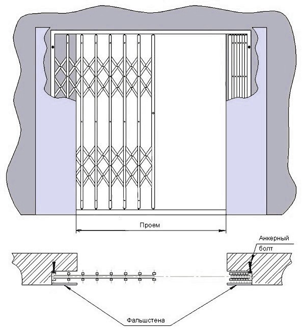 В ходе строительных работ во время ремонта или перепланировке помещения при установке раздвижных решеток на двери или окна специалисты рекомендуют «прятать» собранное полотно в так называемый пенал (ниша или короб).